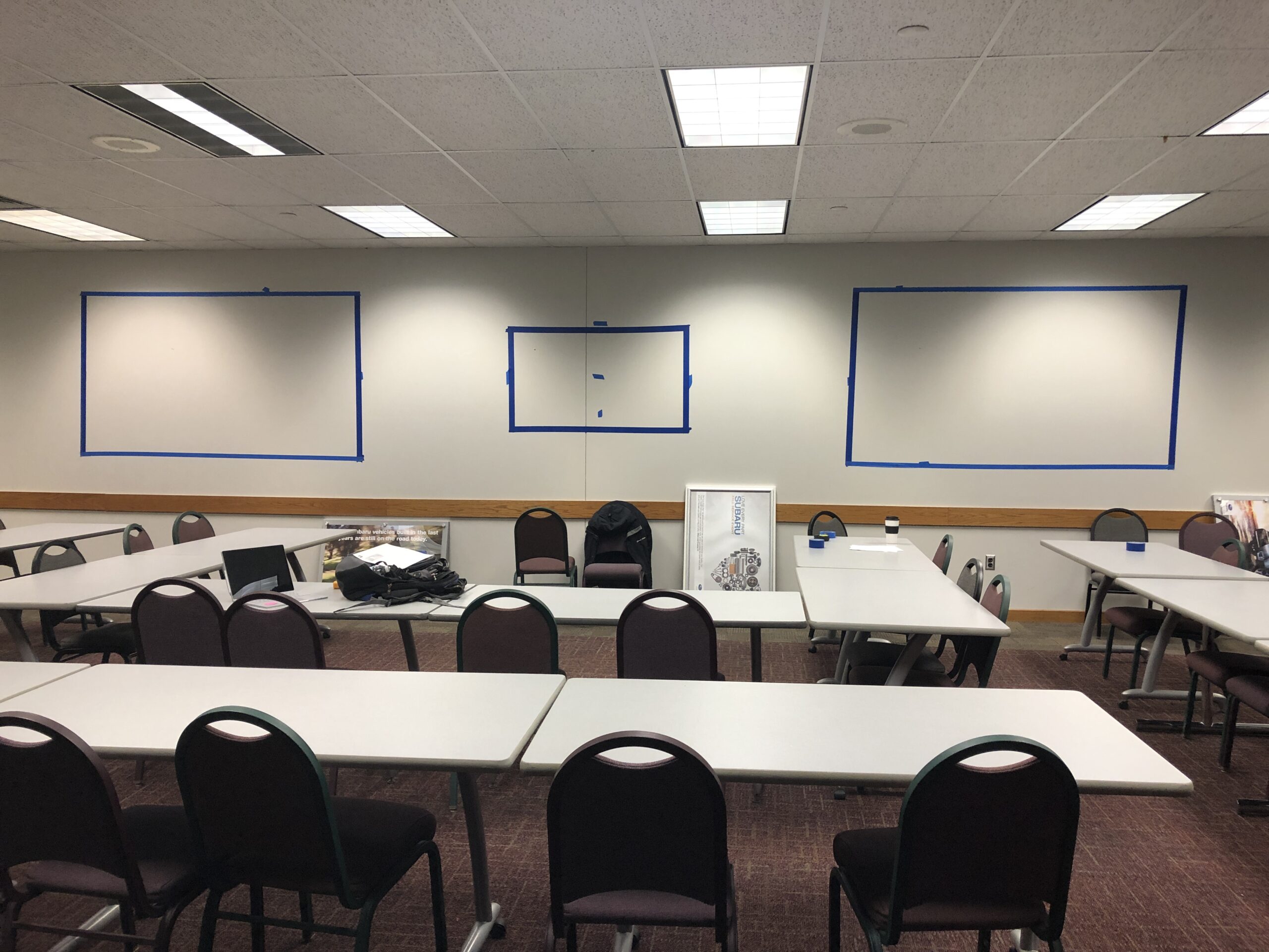 We added cameras to the front and back of the room that automatically track the presenter wherever they walk in the room. And two new touchscreens allow for dozens of configurations with only a few button presses. Finally, we installed a wireless presentation system so anyone could come into the room and share their laptop screen on any of the displays.
